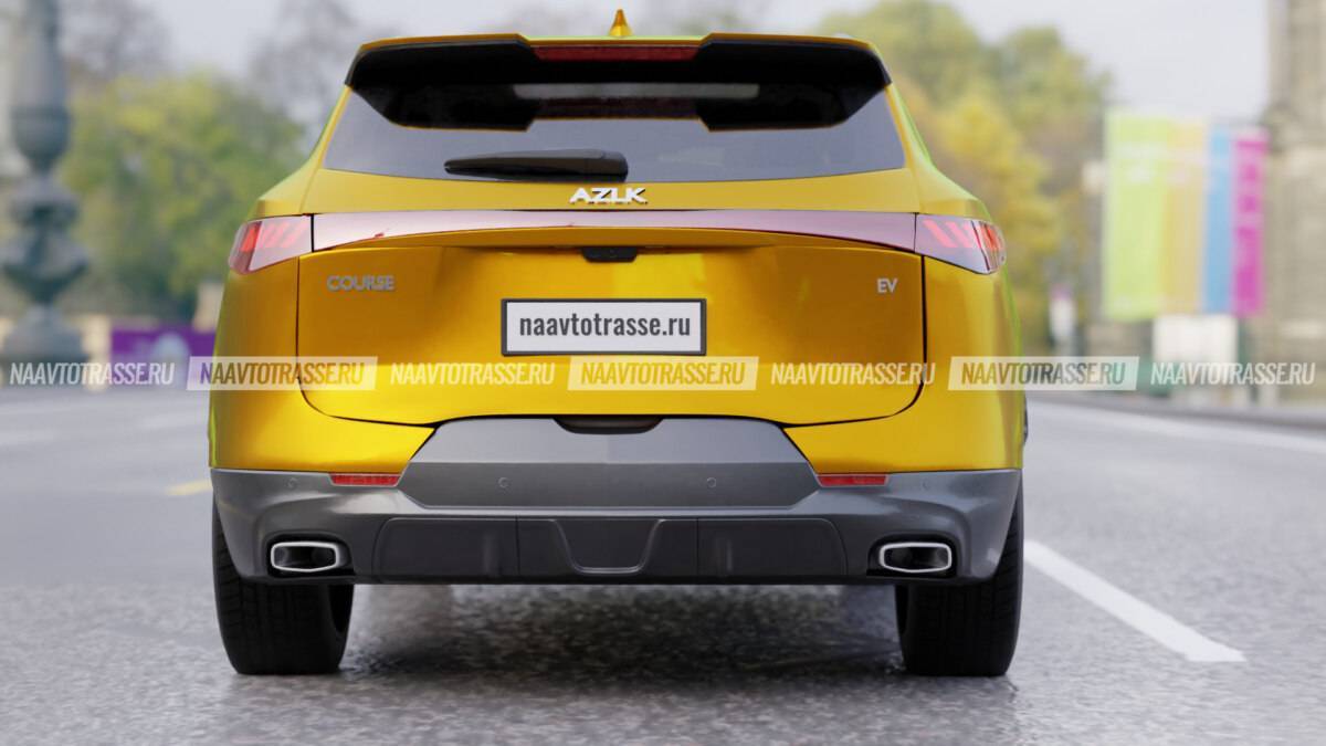Корма у новинки имеет ступенчатую конфигурацию. Относительно компактное заднее остекление, расположившись под заметным углом, таким образом формирует незначительный выступ на багажном отсеке, на который разработчик вынес удлиненный стоп-сигнал. Последний соединяет суженную кормовую оптику с вертикально ориентированными светодиодами. Данное решение тоже делает новый «Москвич» похожим на Hyundai Tucson. В центре багажная дверь немного изгибается во внутрь, а расположенный ниже бампер, наоборот, выпирает назад. Он практически полностью укрыт защитным пластиковым обвесом и дополняется двумя выхлопными патрубками, один из которых, вероятно, выполняет декоративную функцию.