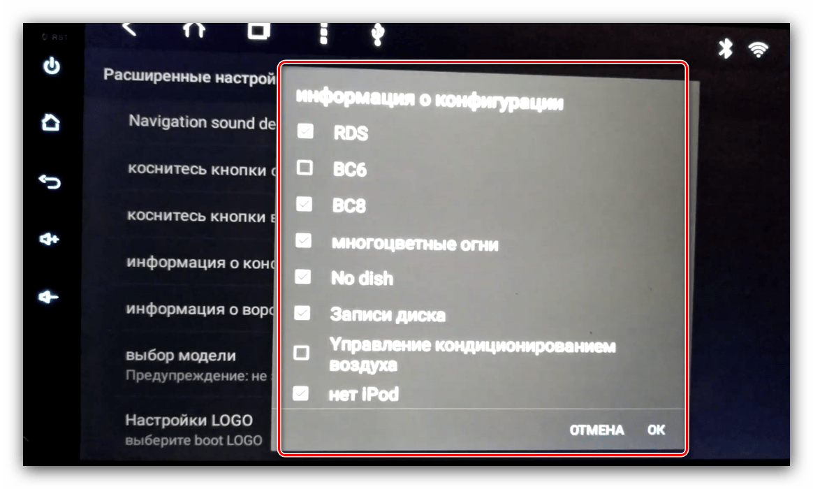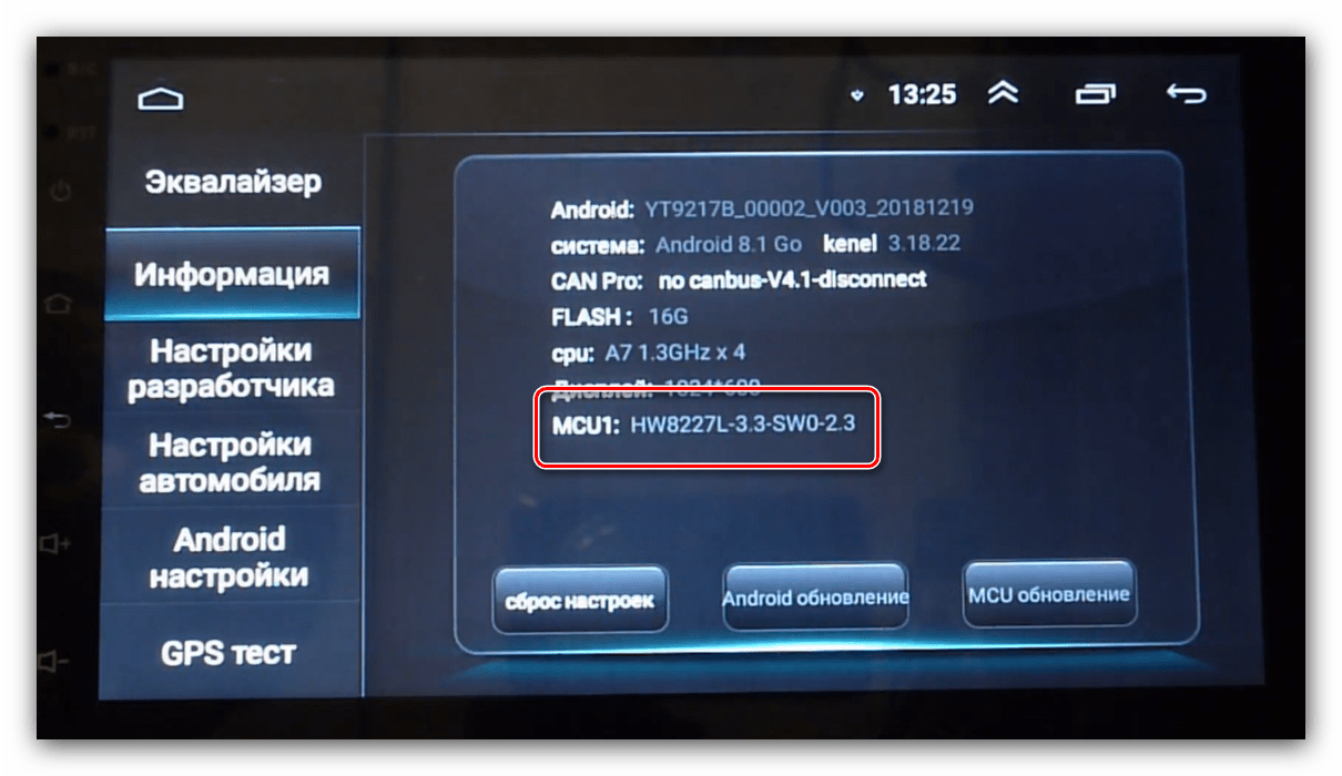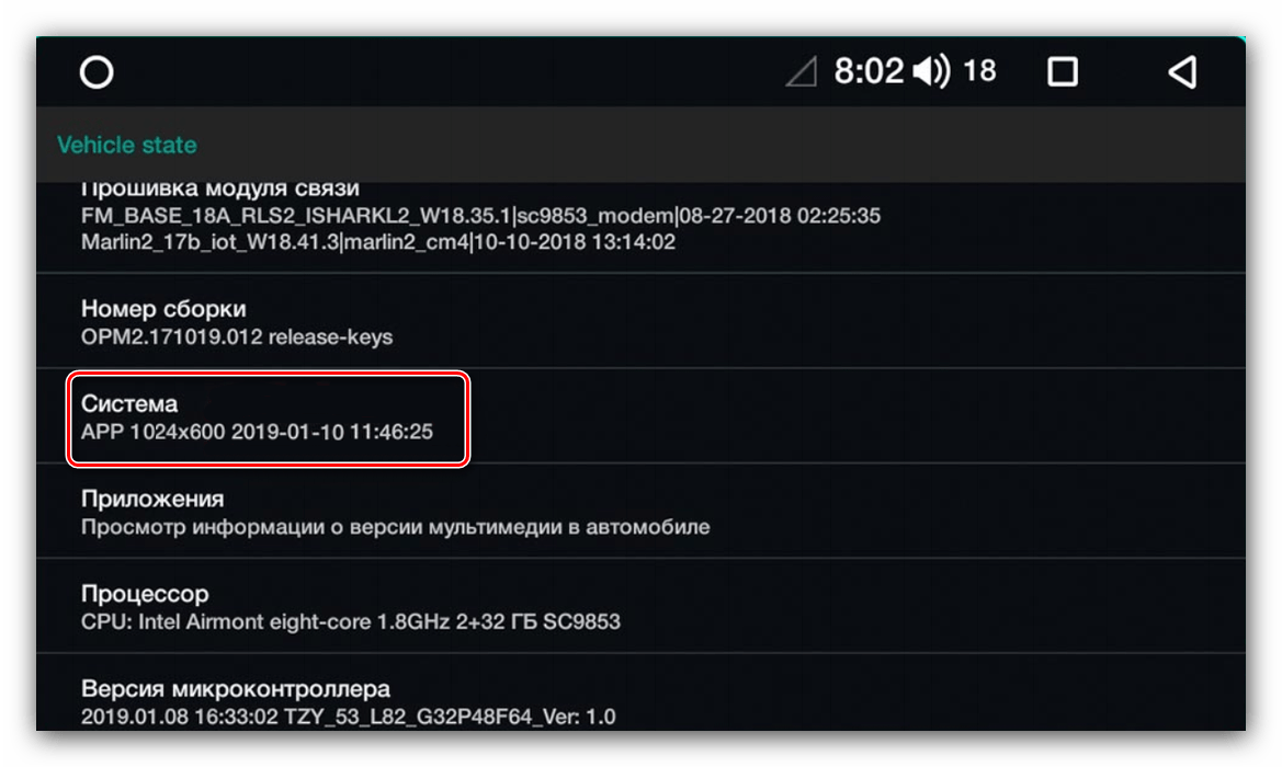 Первым делом следует определить конкретную модель вашей автомагнитолы. Самое простое решение этой задачи заключается в использовании настроек девайса – откройте его главное меню и тапните по соответствующей иконке.