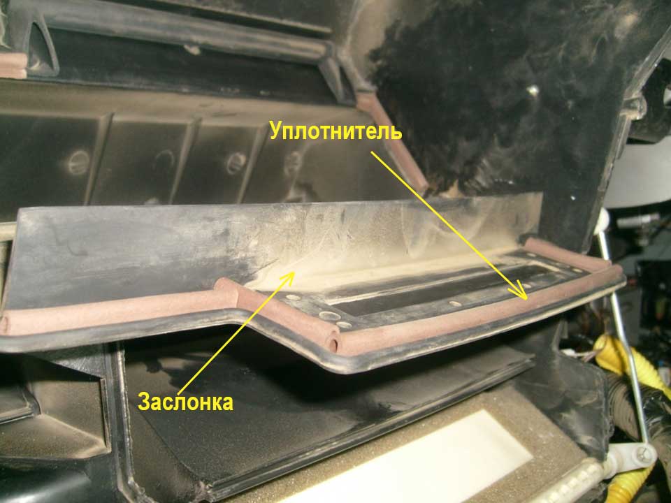 Если заслонка не полностью перекрывает поток холодного воздуха, на нее клеится уплотнитель