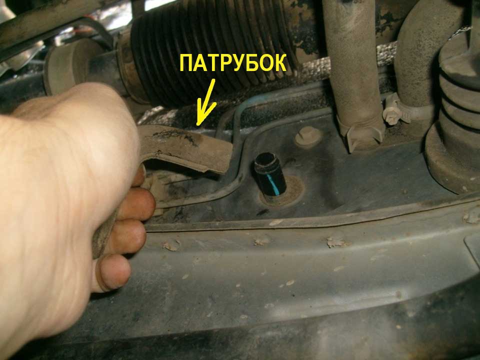 Для извлечения механизма управления МКПП снимается патрубок для слива конденсата