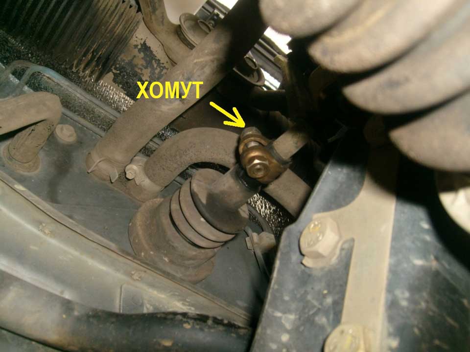 Для извлечения тяги управления КПП из смотровой ямы необходимо снять хомут