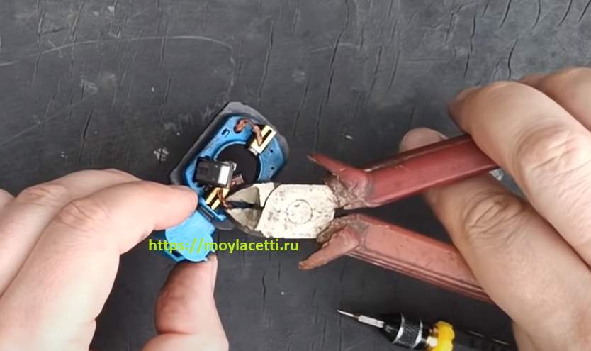Важно! Изношенные щетки извлекайте вперед. То есть, не отгибайте заднюю часть щеткодержателя