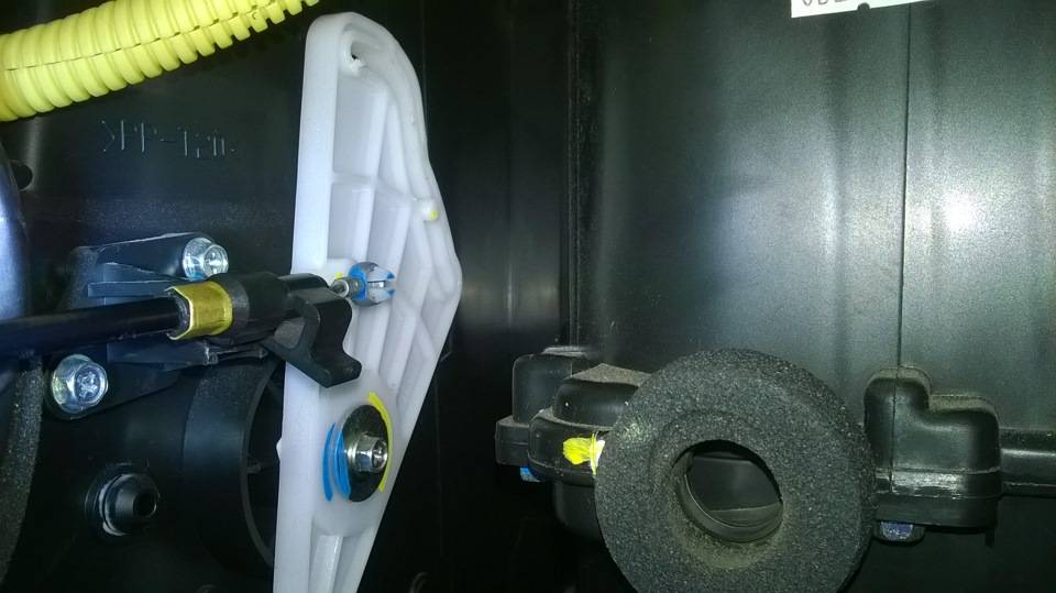 Открывается доступ к заслонке и к сломанной тяге. Самый популярный выход из положения — обычная стальная проволока, с помощью которой заслонка крепится к обломку тяги так, как это показано на фото. Демонтируйте корпус салонного фильтра. Снимите шланги подачи антифриза в радиатор печки и пароотводящий шланг. Установите новый радиатор и снятые узлы в обратном порядке. По окончании процедуры замены необходимо проверить все соединения и залить новый антифриз в систему охлаждения, а после оценить качество выполненной работы, включив печку.