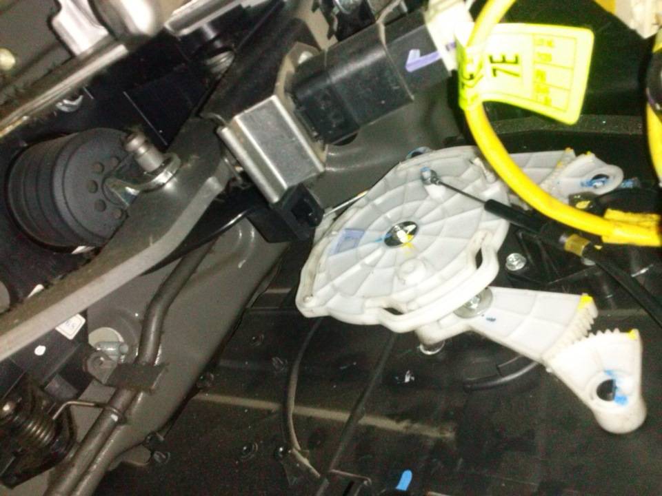 Ремонт привода заслонки в сервисе может обойтись недёшево. Для починки тяги вам потребуется изготовить или подобрать деталь, которая заменит проушину крепления заслонки. Снимите боковую крышку центральной консоли с водительской стороны. Она держится на пластиковых защёлках.