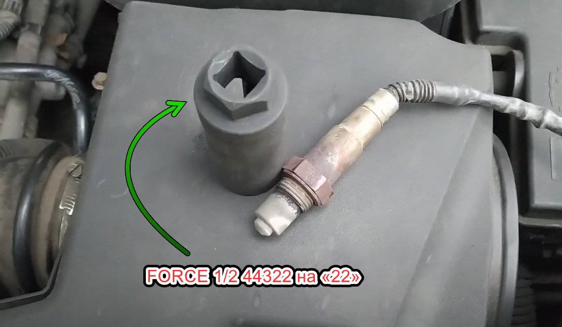 Возьмите ключ FORCE 1/2 44322 на «22» и выкрутите кислородный датчик