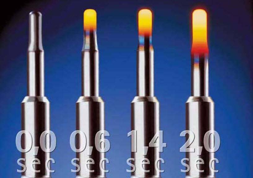 Это не так. Свечи накаливания разогреваются электрическим током, после чего их тепловой наконечник начинает повышать температуру сжатого в цилиндрах воздуха. А воспламенение возникает после впрыска солярки в этот горячий газ. Температура самой свечи в этот момент особого значения уже не имеет.