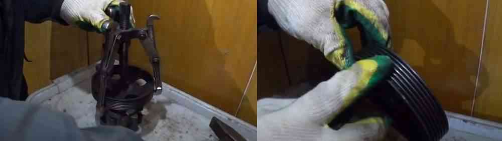 При помощи съемника снимаем шкив