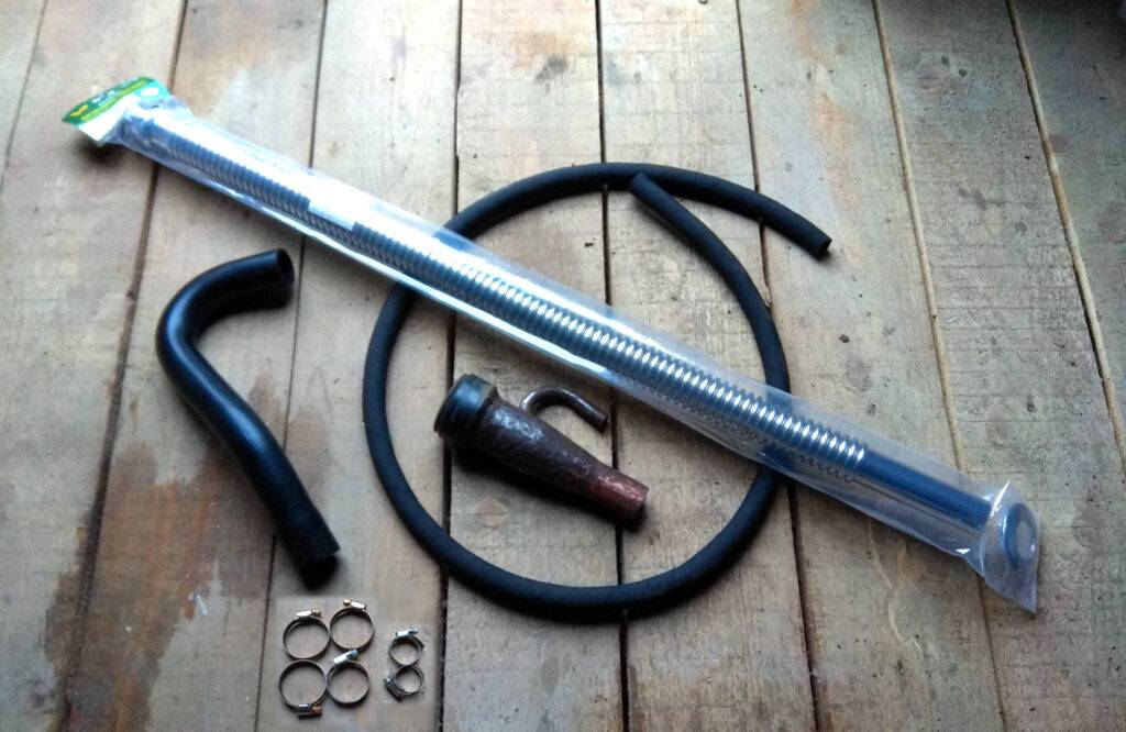 Вторую трубку от патрубка установил на другой конец гофротрубы и стянул хомутом. Вот что получилось.