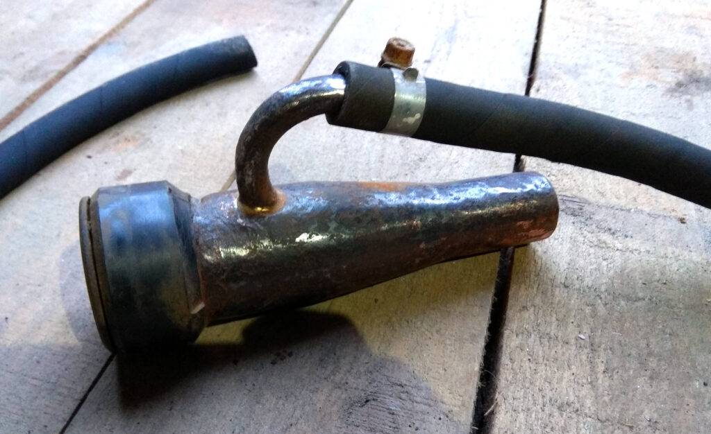 Отпилил начало заливной горловины, она сохранилась в хорошем состоянии. Обработал отпиленную горловину болгаркой от ржавчины и покрыл цинкарем (преобразователь ржавчины).