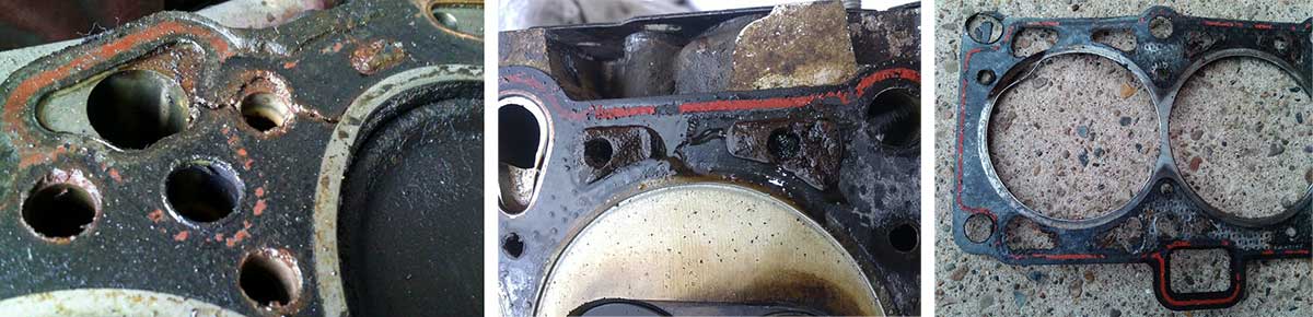 Во втором случае ГБЦ и БЦ неплотно прилегают друг к другу, из-за чего газы с атмосферным воздухом проходят в имеющиеся отверстия и разрушают прокладку.