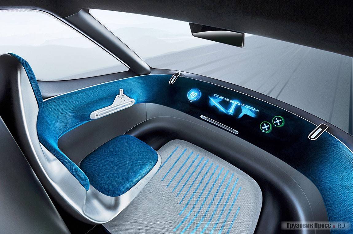 Стандартные органы управления в Мерседес Вижн АВТР отсутствуют, то есть модель является полноценным беспилотником, вот только об особенностях автопилота разработчики не распространяются.