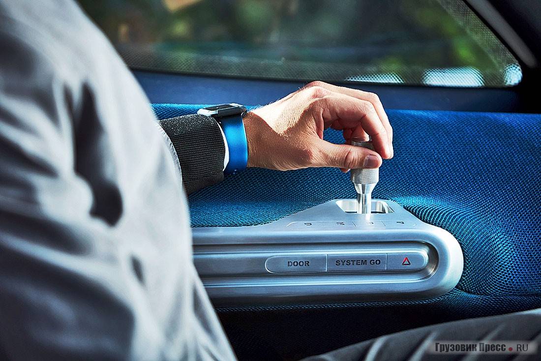 В кабине как-то немного пустовато и слишком просторно. Привычка – вторая натура, отсюда и ощущения. Если же говорить о концепции интерьера, то она всецело обеспечивает комфортные условия для работы водителя. Отказ от рулевого управления, педалей и центральной консоли создали невообразимую свободу движения в кабине и беспрепятственную посадку в автомобиль. А благодаря электроприводу автомобилю больше не требуется трансмиссионный агрегат. Это позволило создать кабину с абсолютно ровным полом.