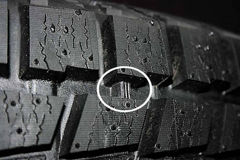 Чаще всего индикатор уровня износа шин (на зимних моделях допускается его отсутствие!) устанавливается на дне канавки протектора: это логически оправдано с точки зрения его постепенного истирания.