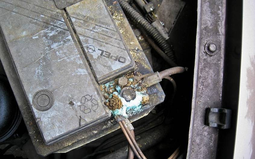 - чистота клемм и отсутствие потеков белого и зеленого цвета;