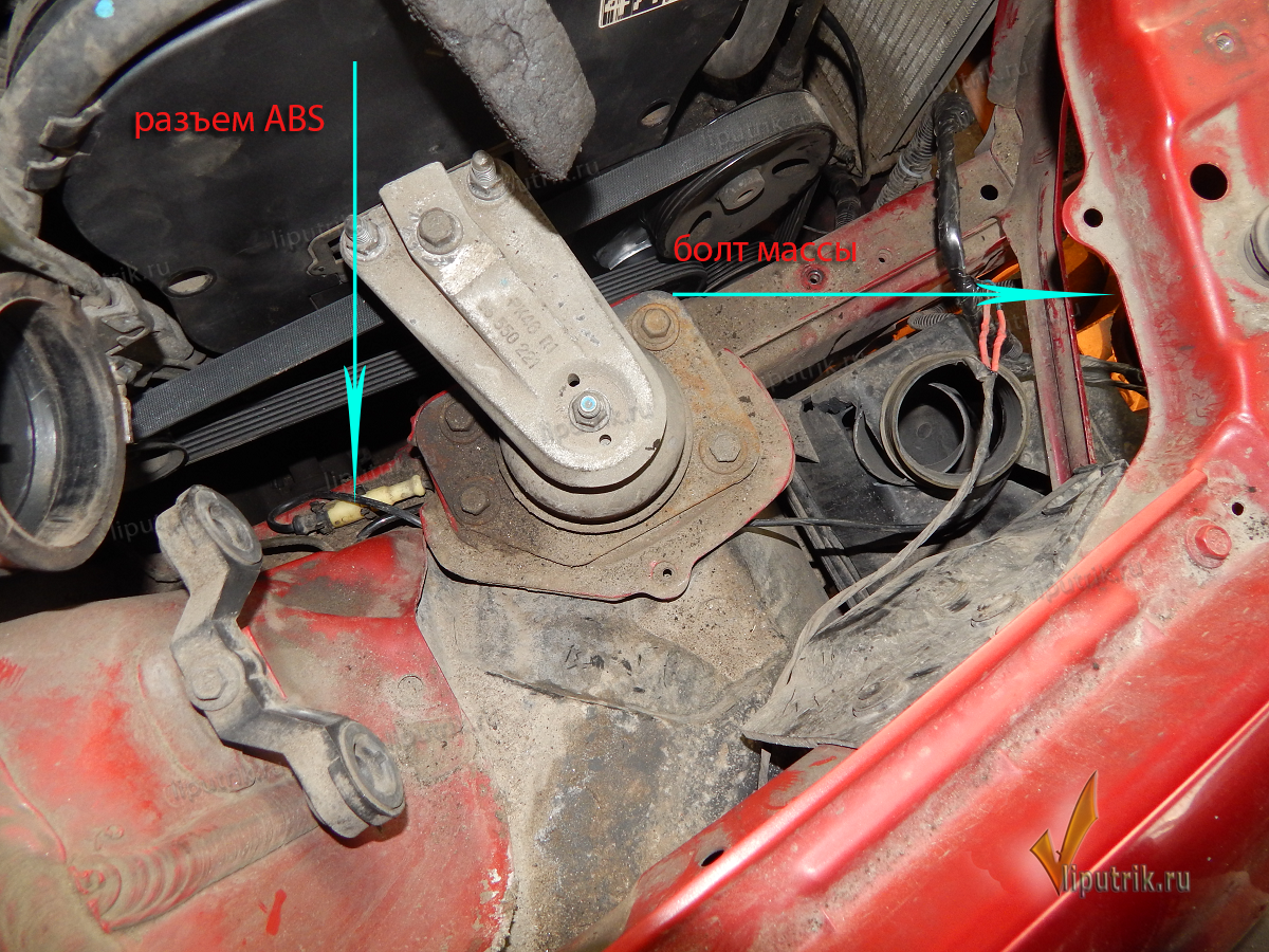 Обьясню причину: контроль неисправности системы АБС на приоре — отсутствие массы на ножке, ответственной за него. Если проводка под абс есть, то под капотом за акб будет разъем, а в нем перемычка…но врядли; если проводки под абс нет, то на разъеме, что идет на приборку, на ножку, ответственную за абс идет просто минусовой провод от близлежащей ножки