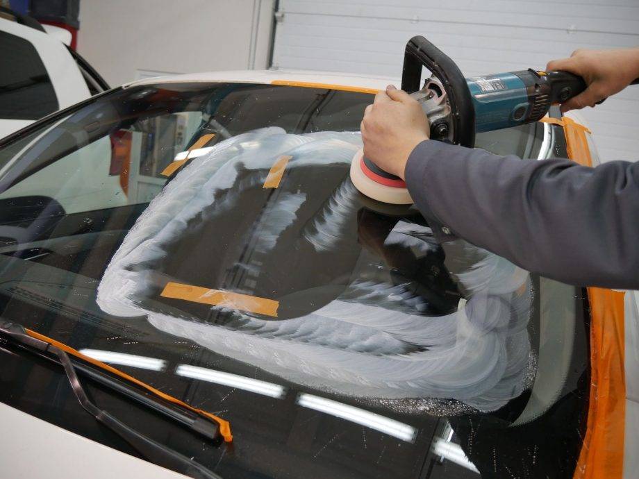 Процесс полировки лобового стекла