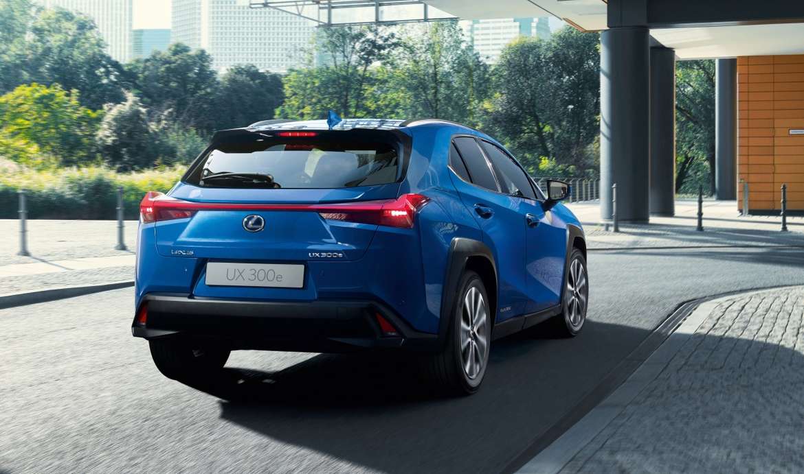 Электрокар UX 300е был презентован на китайском автосалоне Гуанчжоу в 2018 году, продажи в дилерских центрах Европы и России ожидаются на начало 2021. Отличий в конструкции кузова, элементах дизайна и комплектаций от бензиновой и гибридных версий практически нет: единственный другой параметр – это уменьшенный на 20 мм дорожный просвет. Заявленные компанией Лексус технические характеристики для 300е: мощность в 204 л.с. при запасе хода 400 км и времени полной зарядки аккумуляторов 50 минут (при использовании зарядной станции в 50 кВт). Зарядный блок для гаражного/домашнего применения в 6,7 кВт потребует 7-8 часов непрерывной зарядки. Оценка запаса хода батареи типа 4KM по циклу NEDС оценивается экспертами максимум в 300 км при условии температуры воздуха не ниже минус 5°С.