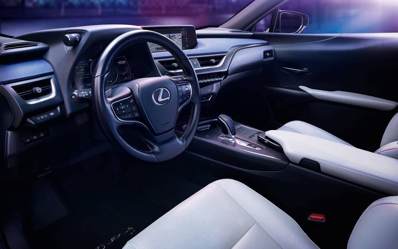 Салон у UX в сравнении с другими кроссоверами Lexus оформлен просто. Но, вместе с тем, интерьер японской модели отделан дорогостоящими материалами, включая натуральную кожу. Его центральную консоль, развернутую в сторону водительского кресла, украшает нестандартный для Lexus блок управления климатом, оформленный по типу Peugeot 5008. Сверху передней панели располагается фирменный сенсорный монитор. Кресла первого ряда дополняются выраженной боковой поддержкой, которая присутствует и на задних сидениях. Из-за компактных размеров кроссовера объем его багажного отсека не превышает 272 литров.