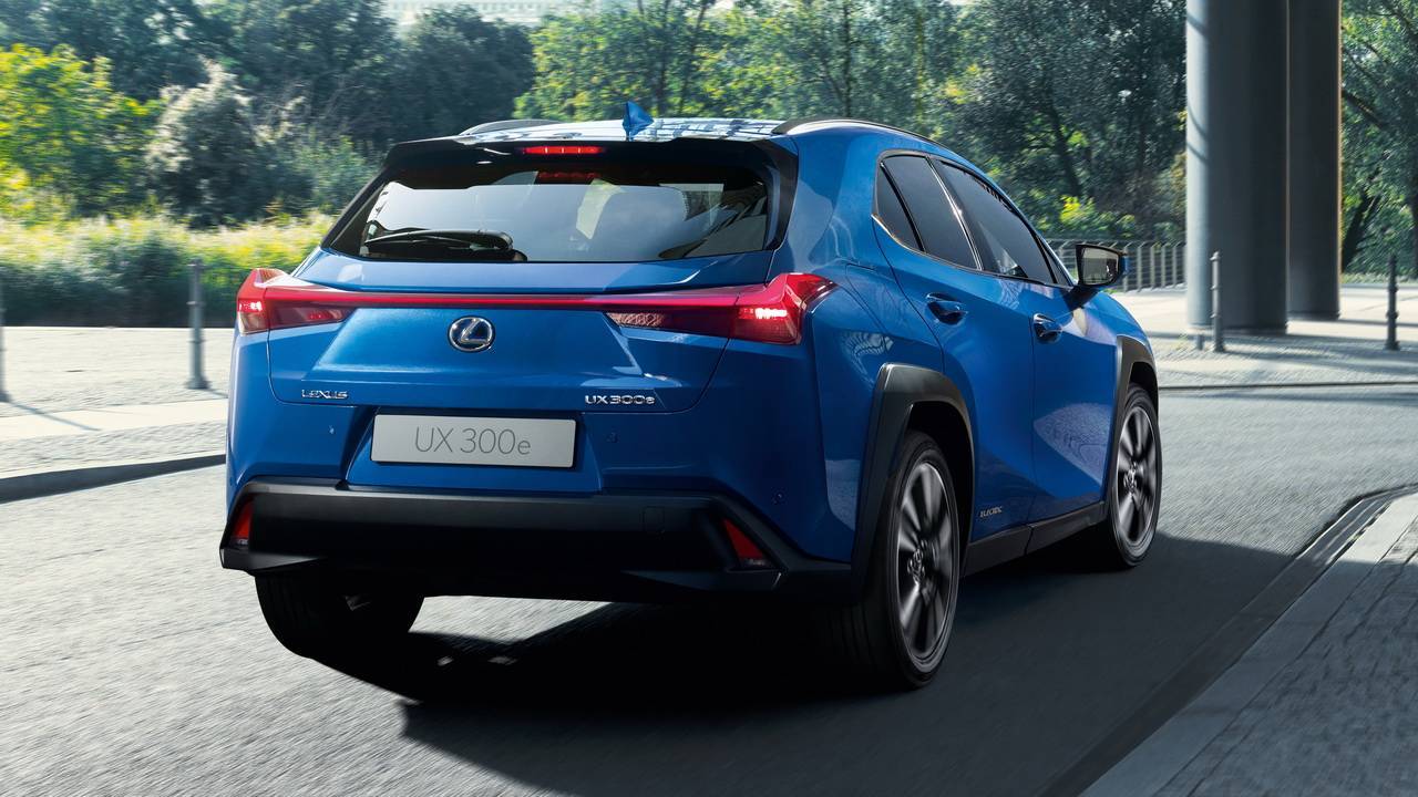 Электрокар UX 300е был презентован на китайском автосалоне Гуанчжоу в 2018 году, продажи в дилерских центрах Европы и России ожидаются на начало 2021. Отличий в конструкции кузова, элементах дизайна и комплектаций от бензиновой и гибридных версий практически нет: единственный другой параметр – это уменьшенный на 20 мм дорожный просвет. Заявленные компанией Лексус технические характеристики для 300е: мощность в 204 л.с. при запасе хода 400 км и времени полной зарядки аккумуляторов 50 минут (при использовании зарядной станции в 50 кВт). Зарядный блок для гаражного/домашнего применения в 6,7 кВт потребует 7-8 часов непрерывной зарядки. Оценка запаса хода батареи типа 4KM по циклу NEDС оценивается экспертами максимум в 300 км при условии температуры воздуха не ниже минус 5°С.