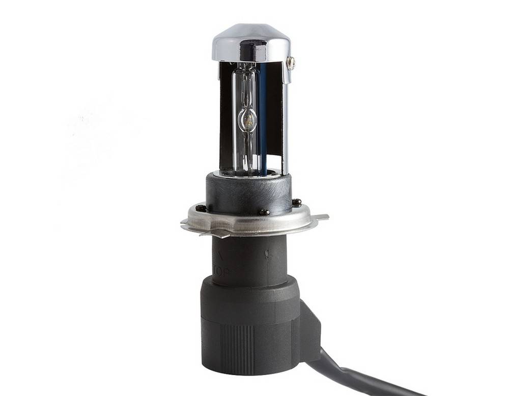 Исторически, лампочка H4 – это двухнитиевая галогенная лампа, в которой дальний свет даёт спираль большой мощности, расположенная в фокусе линзы, ближний свет даёт спираль малой мощности, смещенная вперед от фокуса отражателя.