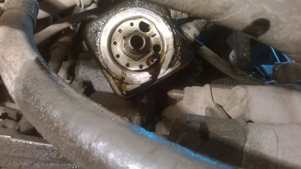 Даже не хотелось думать про замену головки, поэтому обратил внимание на еще одно потенциальное место утечки. Это теплообменник снизу двигателя.