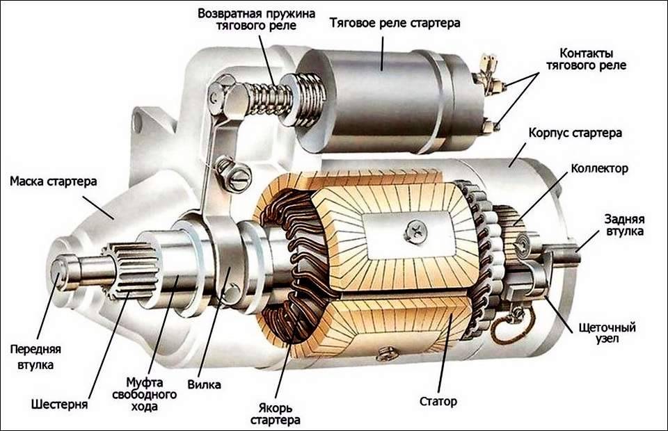 Принцип работы стартера и его устройство