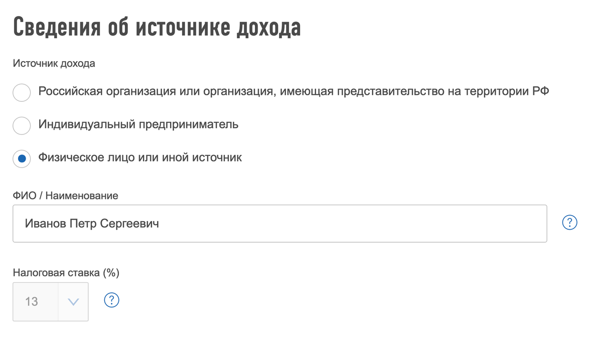 Если машина продана физическому лицу, нужно выбрать соответствующий источник дохода и заполнить данные покупателя