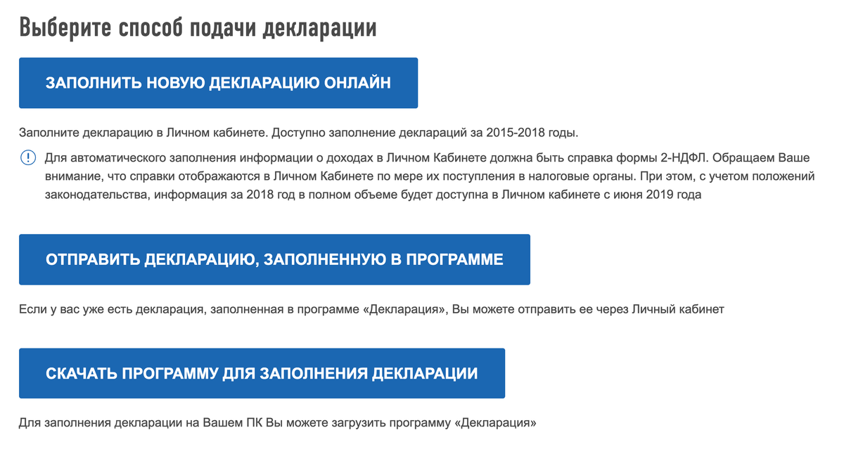 Подавать декларацию через интернет удобнее всего. Если заполнять на бумаге, можно ошибиться. В личном кабинете и программе «Налоговая декларация» файл перед отправкой проходит проверку: все ошибки помечаются, есть подсказки для исправления. Если найдутся неточности, их легко поправить — не придется заново заполнять все листы. Но законным будет любой способ. Главное, чтобы налоговая вовремя узнала о доходах.