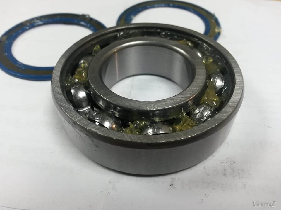 осмотр старого подшипника, претендующего на замену. Еще до появления гула, скрежета и вибрации об этом может сказать его внешний вид. Обычно сразу заметна деформация подшипника и защитной вставки, а на корпусе видны следы смазки. Чтобы быть уверенным в том, что подшипник нуждается в замене, можно, вывесив задние колёса (или только одно) при включенном двигателе прислушаться на наличие шума со стороны кардана. Не исключено, что в появившейся вибрации виноват не сам подшипник, а крестовина или редуктор заднего моста.