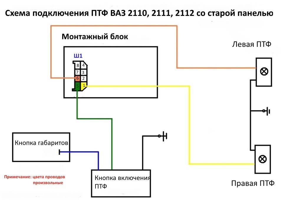 На моделях ВАЗ 2112 с европанелью в автомобильной проводке заводом заложены провода для подсоединения противотуманных фар.