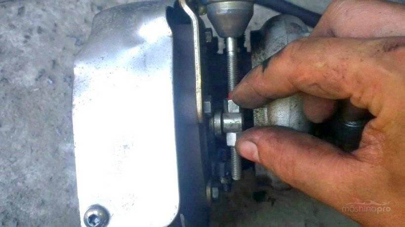 - в самом начале со штока снимается скоба, далее ключом ослабляется гайка;