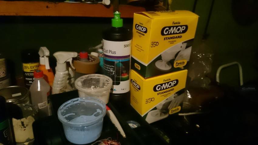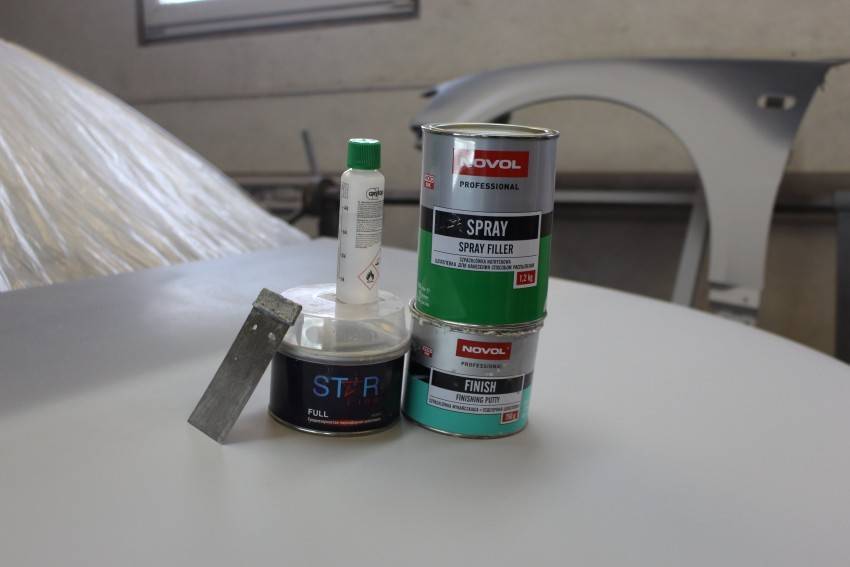 5) Подготовьте автомобильную шпатлевку с отвердителем, и разведите ее в соответствии с рекомендациями производителя. Шпатлевка после разведения с отвердителем пригодна для работы в течении 2-3 минут.