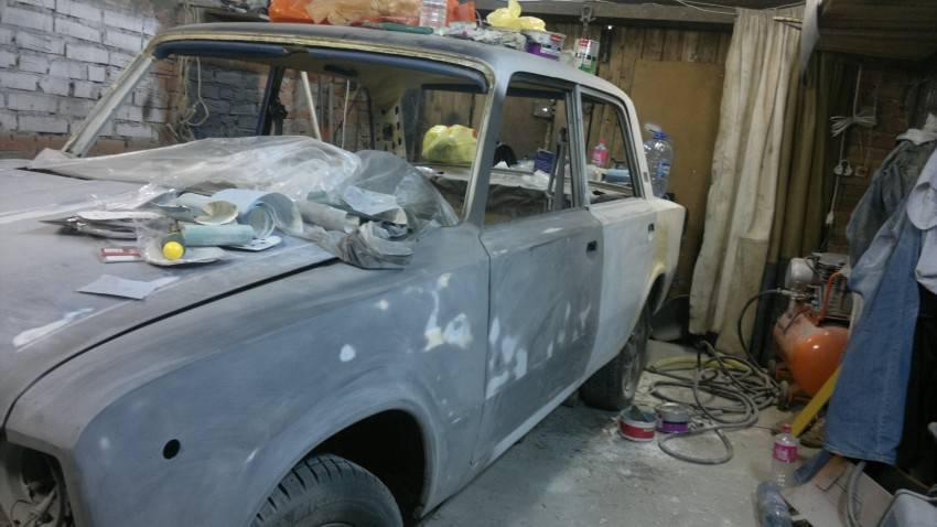 Для начала вооружитесь перчатками и респиратором и очистите поврежденное место от загрязнений. «Ненужная» часть машины накрывается пленкой.