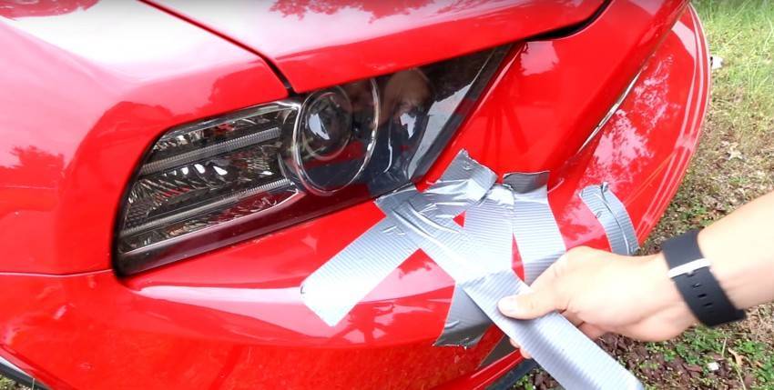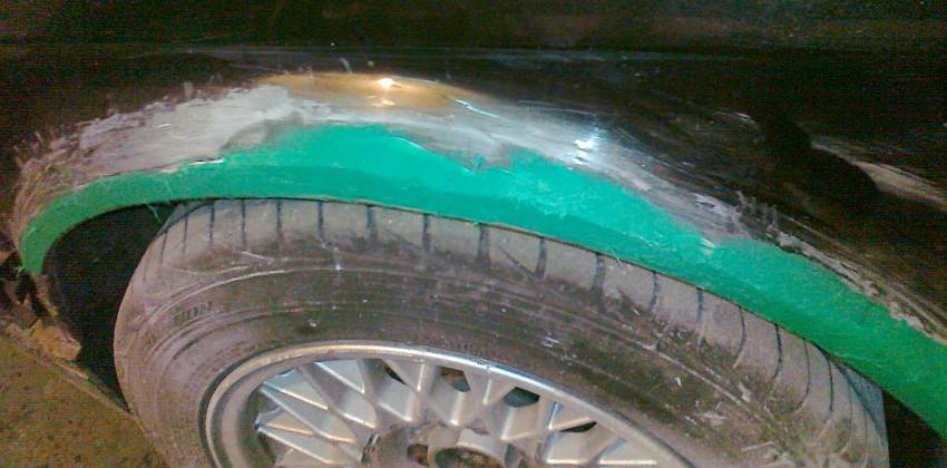 12) После покраски удаляем малярную ленту и газеты с ремонтируемой детали.