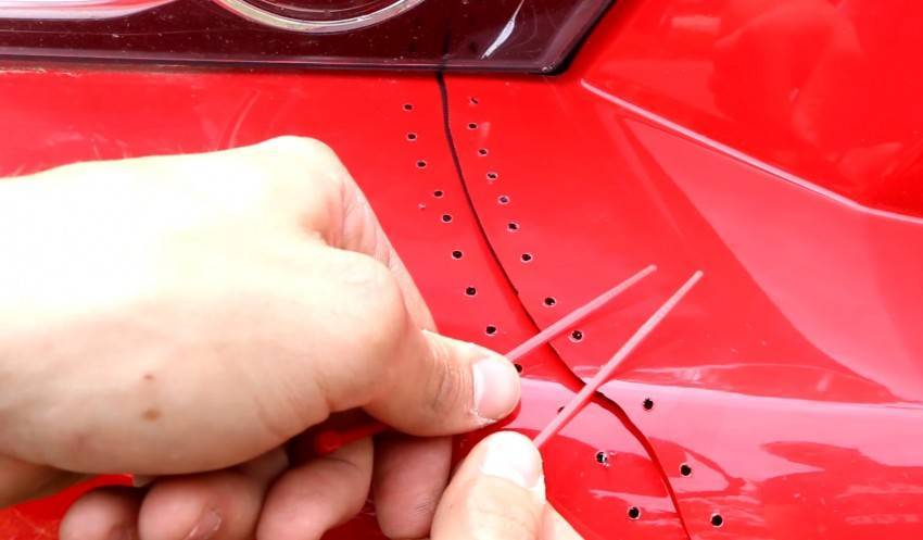 Для восстановления формы необходимо добраться до детали с другой стороны, но это может быть либо невозможно, либо слишком трудозатратно. В этом случае можно попробовать выправить вмятину полностью снаружи.
