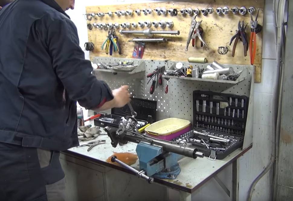 После того как узел сняли с автомобиля, можно приступить к его переборке. Для этого уже не требуются какие-то особые условия для работы. Достаточно свободного пространства на столе и набор гаечных ключей и съёмников. Порядок действий: