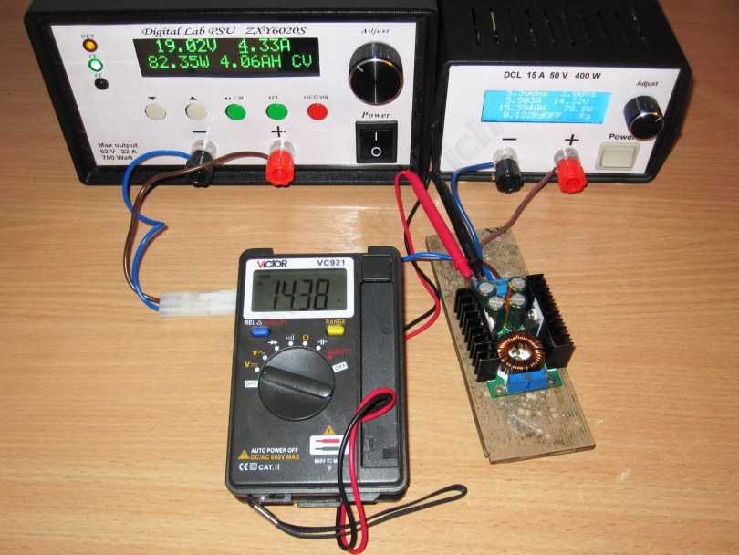 Плавно увеличивая сопротивление переменного резистора, добиваемся значения напряжения на выходе в 14,4 В.