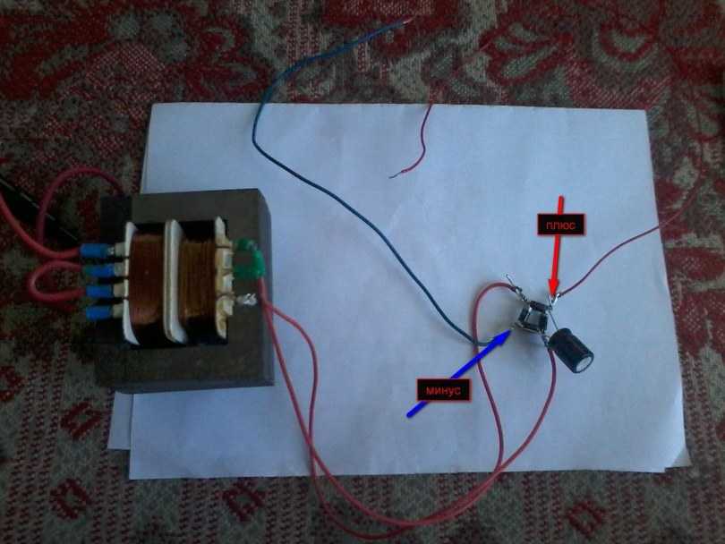 - Выпрямитель тока на выходе с встроенного трансформатора. Заводской или самодельный, собранный из 4 диодов.