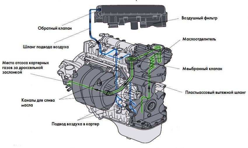 Автомобильный двигатель любого вида имеет сложную конструкцию. В него входят различные системы и механизмы, взаимодействующие друг с другом. Для обеспечения отвода газов, образующихся во внутренних полостях силового агрегата, дизельный мотор оборудован эффективной системой вентиляции.