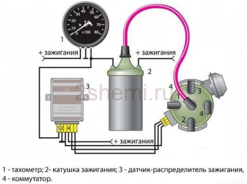 В бесконтактной системе зажигания тахометр подключается не к катушке, а к коммутатору