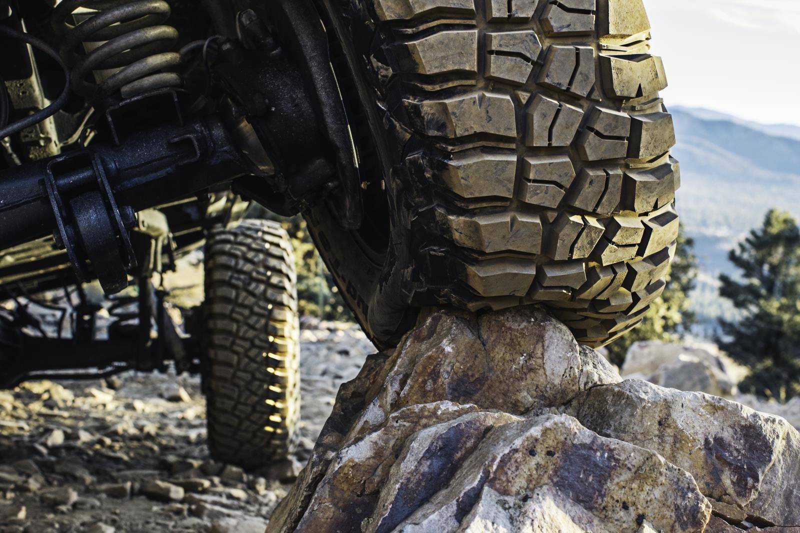- Mud Terrain T/A KM2, выпускаемые американской компанией BF Goodrich. Покрышка рассчитана на смешанный режим движения с преобладанием эксплуатации в условиях бездорожья (от 80% пробега). Покрышка имеет симметричный рисунок, составленный из крупных блоков, периферийные элементы оснащены режущими кромками, улучшающими сцепление с грунтом. Каркас шин построен на базе 3-слойного синтетического корда и 2-слойного стального брекера. Боковая часть покрышки усилена, что снижает риск пореза.