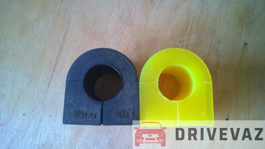Для этого необходима уверенность в собственных силах, либо же придется обратиться к специалистам в ближайший сервис. Поиск по артикулу втулки стабилизатора на Ладу Веста поможет, если есть понимание, как деталь выглядит в натуре. Существует несколько различных вариантов, например, более высокие вкладыши от «Шевроле» или от «Киа», с впрессованным хомутом. «Нивовские» детали подтачиваются для уменьшения их высоты, потом в них выполняется специальная прорезь.
