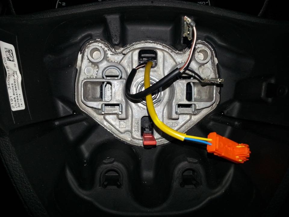 Он такой формы и материала, что от любых лишних усилий разлетается вдребезги. Внутри него не просто клеммы, а ещё какой — то дроссель (типа катушки). Отдельно этот кусочек проводки с разъемами не продаётся. Только вместе с блоком подрулевых переключателей.Так что учтите все вышесказанное, и не повторяйте ошибки других. Выполняйте все аккуратно и не торопясь.4. Освободив Подушку от всех креплений, аккуратно отодвиньте её от руля.