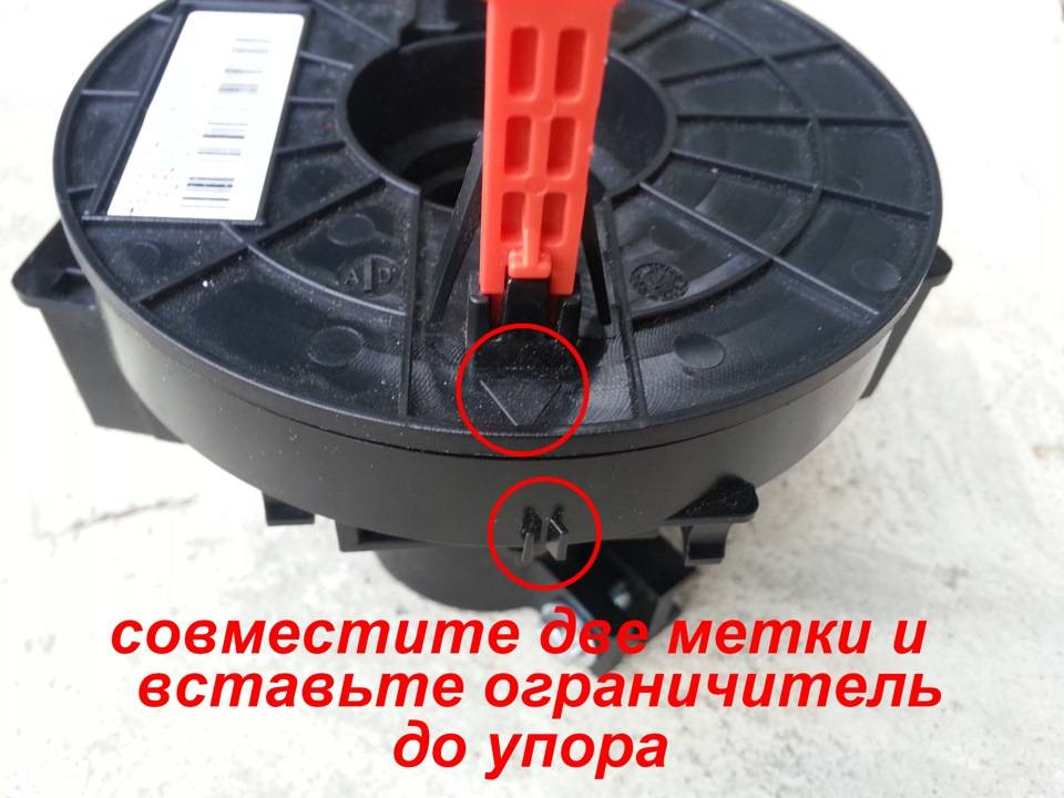 6. Воротком с головкой на 24 ослабте гайку руля. Открутите её не до конца. Оставьте её закрученной на пару витков.7. Покачивая руль в стороны и тянув на себя, сдерните его с посадки. Он упрется в гайку.8. Выравниваем колеса авто и устанавливаем руль прямо.9. Вынимаем из кармашка фиксатор. Совместив метки вставляем фиксатор в блок подрулевых переключателей, как показано на фото.