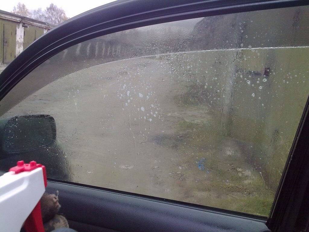 10-15 минут ожидания необходимо для разъедания остатка клея, оставшегося после снятия тонировки.