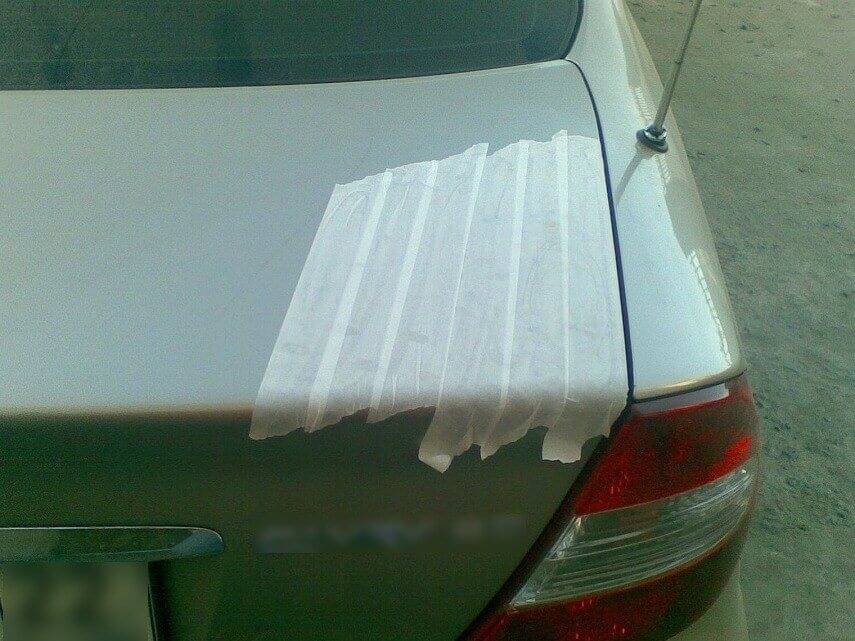 - После этого необходимо провести мероприятия по защите рабочей поверхности автомобиля. Для этого необходимо покрыть места крепления антикрыла клейкой лентой или строительным скотчем;