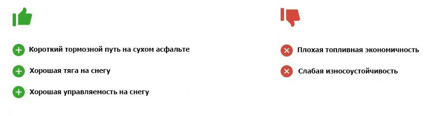К недостаткам относится быстрый износ и плохое сопротивление качению, так как в год они экономят всего 54 литра.