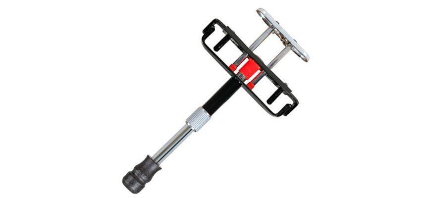 Еще одно механическое устройство, оно создано для машин с ручной коробкой передач. Приспособление ставят на педаль сцепления и тормоза. Конструкция фиксирует их в одном положении. Запорный механизм из титана сложно повернуть или вскрыть отмычкой. Водитель открывает его с помощью ключа.