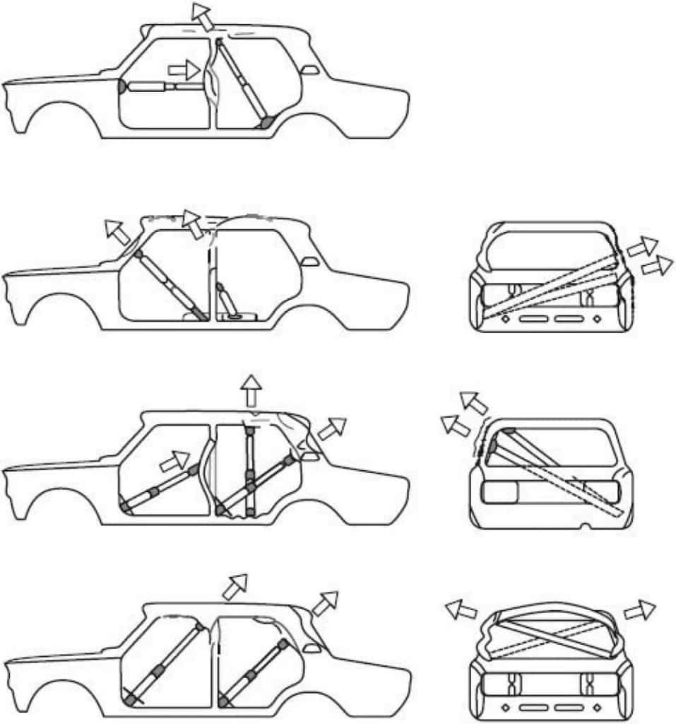 Для того чтобы исправить появившиеся деформации кузова, необходимо применить определенно направленное усилие к самому металлу. Именно для этих целей стапель оборудован специальными гидравлическими приводами, а также разнообразными приспособами для закрепления одной части кузова и дополнительного закрепления остальных частей. Делая вывод из того что, каждый автомобиль деформируется в разной степени, стоит считать каждый вид деформации уникальным по-своему, требующий кузовного ремонта разнообразного уровня сложности. Именно для этих целей существует достаточно большое количество разновидностей стапельных устройств, способных помочь выполнять ремонтные работы, а также правки дефектов кузова с разными уровнями сложности.