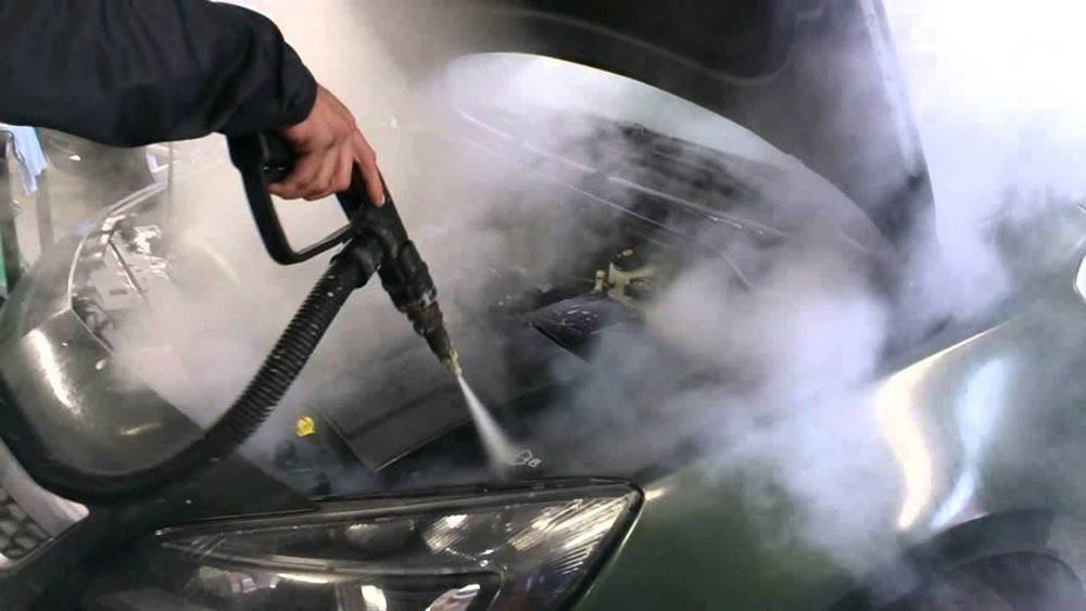 Очистка двигателя паром процесс быстрый и эффективный. Процедура выполняется с использованием мощного парогенератора со шлангом и нескольких насадок, позволяющих очистить даже самые труднодоступные отверстия, стыки и полости. Данная технология дает возможность без контакта с поверхностью мотора легко удалять сложные загрязнения. затвердевшие, маслянистые отложения и грязь из подкапотного пространства. Обработка сухим паром не вредит узлам и электропроводке и полностью исключает попадание воды на свечи и элементы воздухозаборников, а также значительно снижается риск образования коррозии металла.